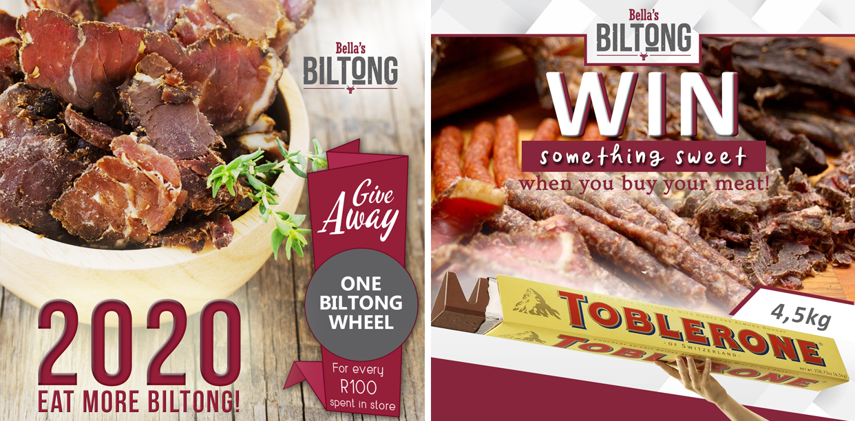 We were asked to design some digital adverts for their social media as well as print media ranging from competition posts to in-store advertising. We had a lot of fun creating these designs for Bellas Biltong and just love the vibrancy of this brand!