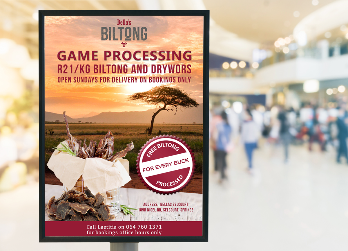 We love getting approached by all types of businesses to do design work, especially the ones that make delicious treats! Bellas Biltong is a company based in the South of JHB that specialises in meaty delights, ranging from biltong & droewors gift packs to processing all your meat cuts when game hunting.